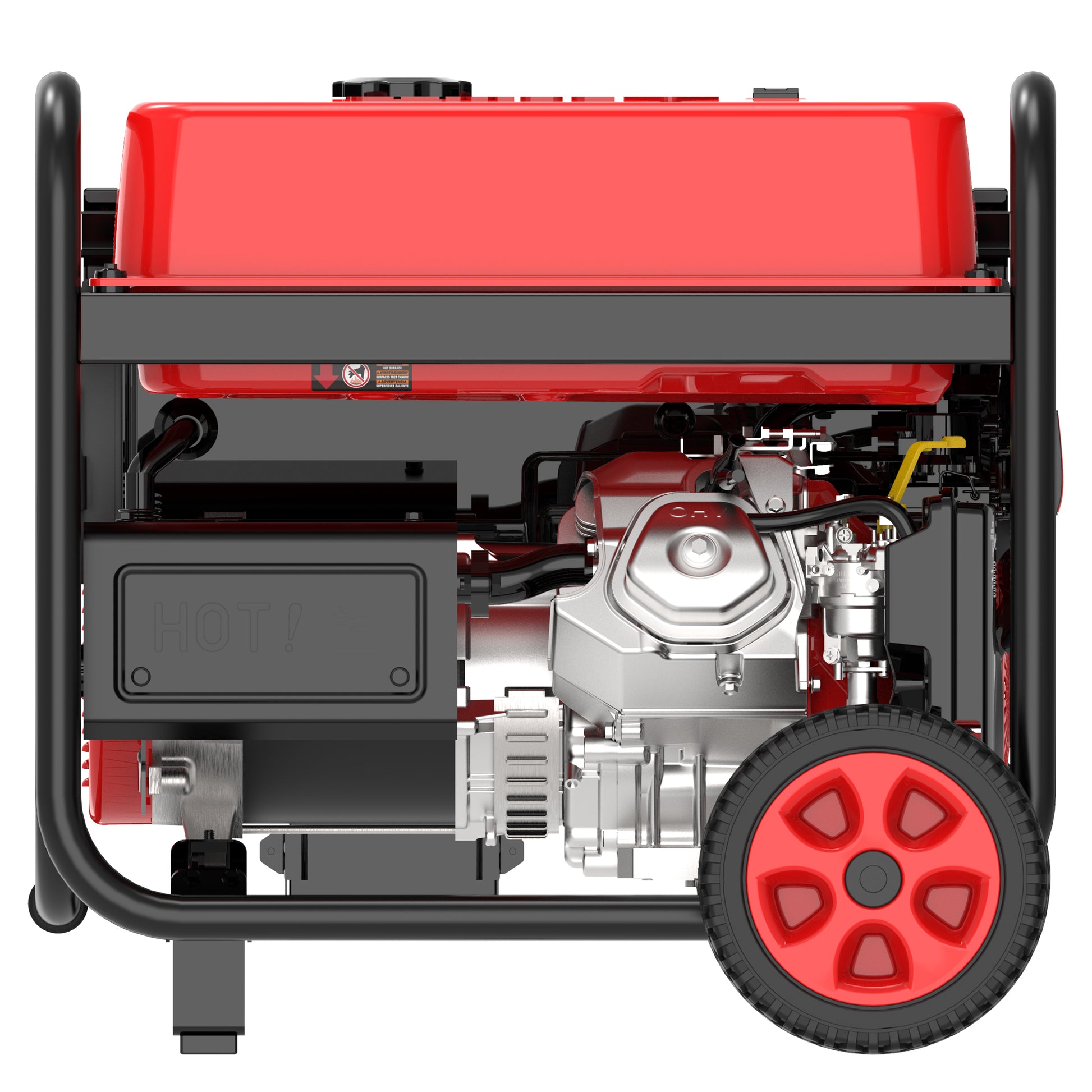 - Mobility: Hardened-steel frame with added roll bars, foam grip handle and flat-free wheels lets you easily transport this generator