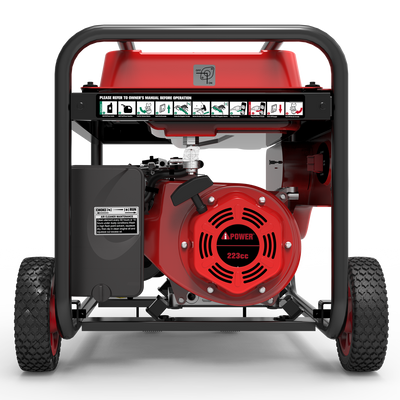 The A-iPower AP5000 produces 5,000 starting watts with 4,000 running watts to power your tools at the construction site, camping ground, or household appliances. Its powerful 223 cc OHV 4 stroke engine comes with a low oil alert light and low oil automatic shutdown to keep your generator performing year after year. The large 4-gallon gasoline fuel tank provides an average run time of 13.5 hours at 25% load. Built in portability with folding handle, rugged wheels and a durable powder coated metal frame to successfully meet your transportation demands.