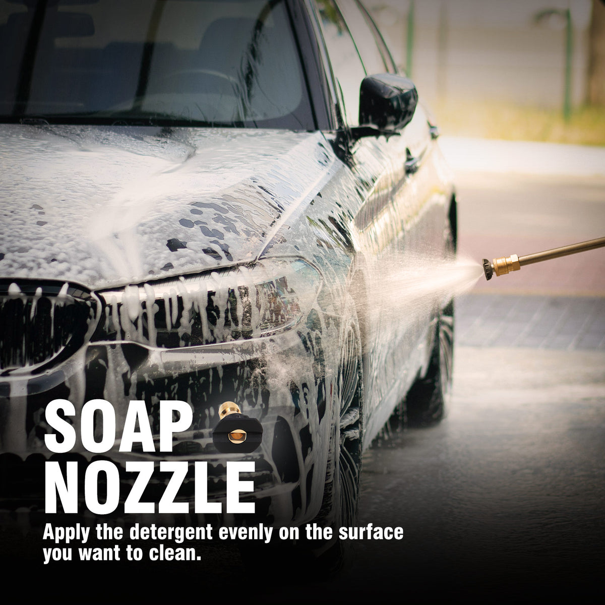 Nozzles & Soap Tank: 4 Pro-Style nozzles - plus turbo nozzle with integrated soap tank for efficient cleaning power
