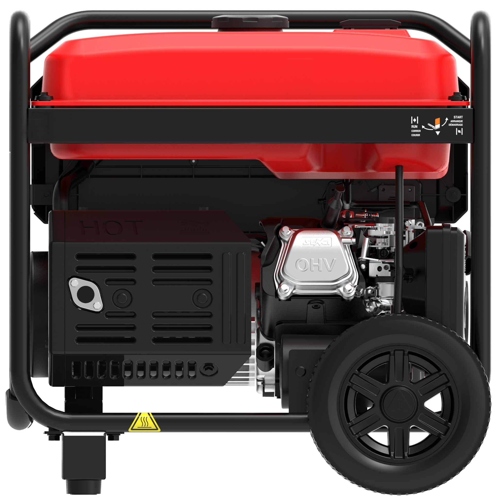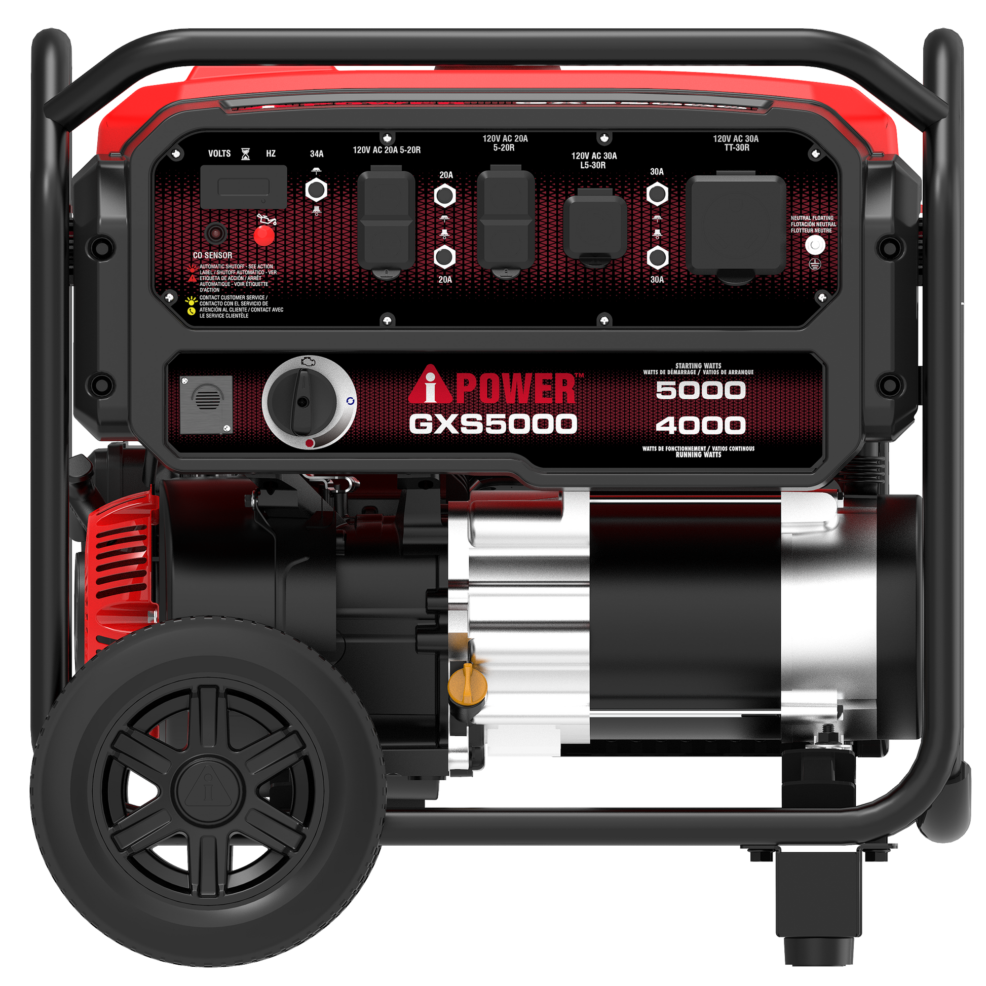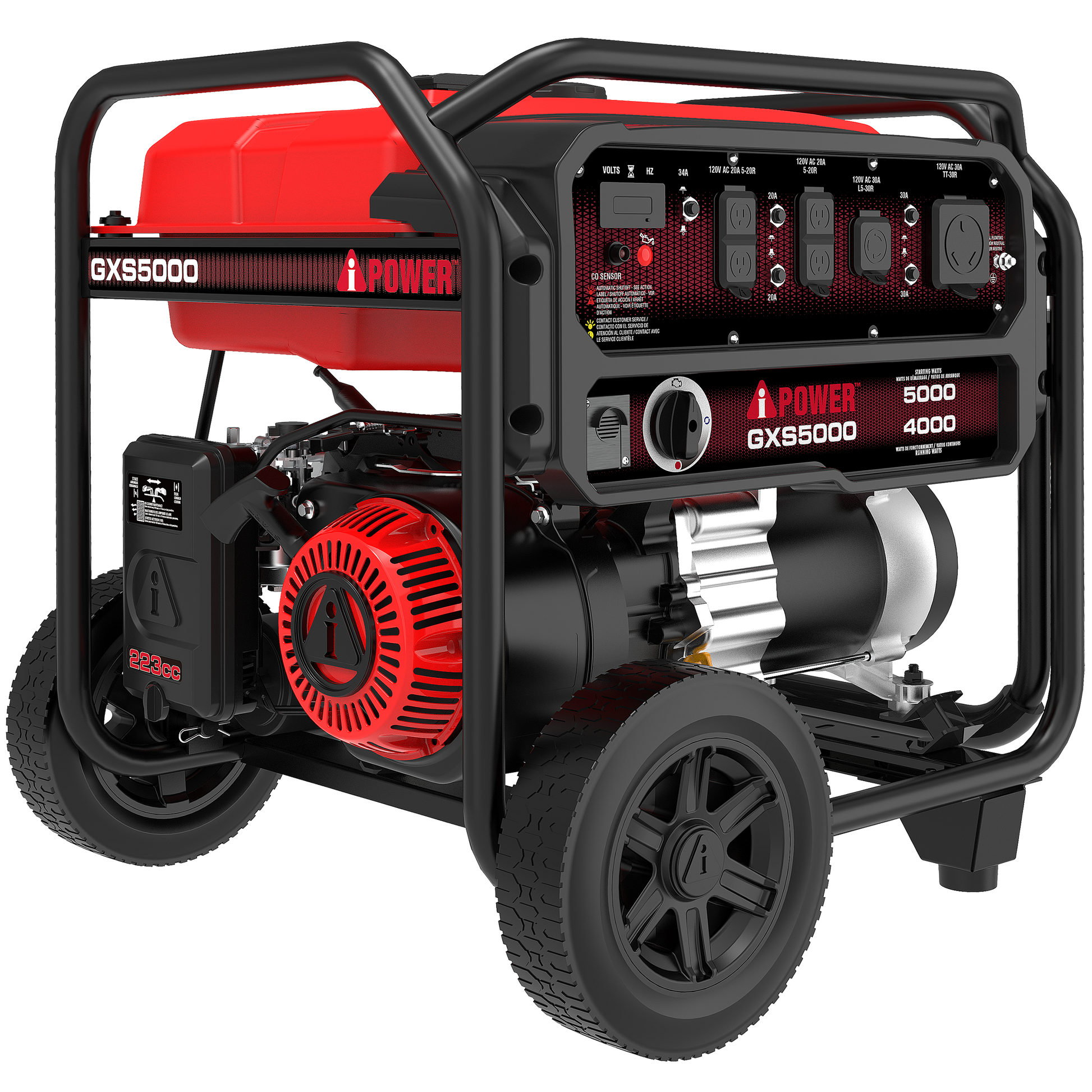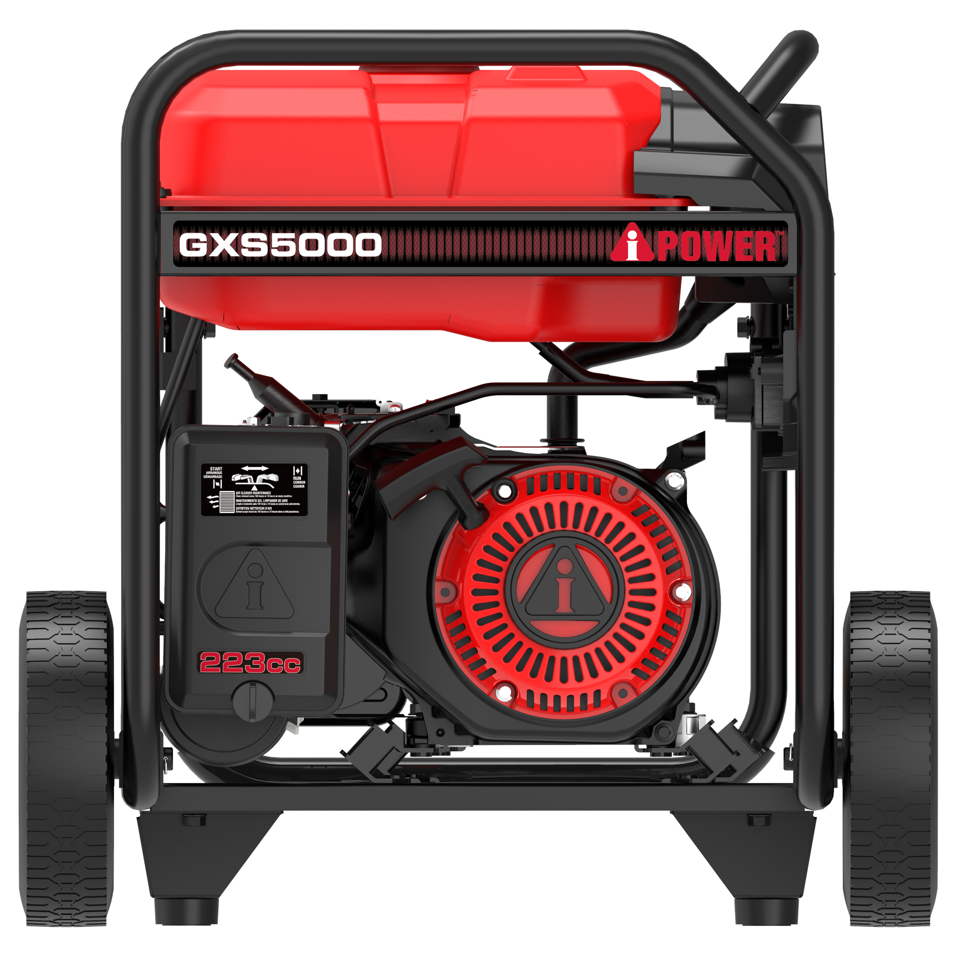 Featuring a 223cc OHV engine with cast iron sleeve and low oil shutdown, the GXS5000 Portable Generator has 5,000 starting watts and 4,000 running watts. The 6.3-gallon fuel tank provides an extended run time of up to 20 hours at 25% load.