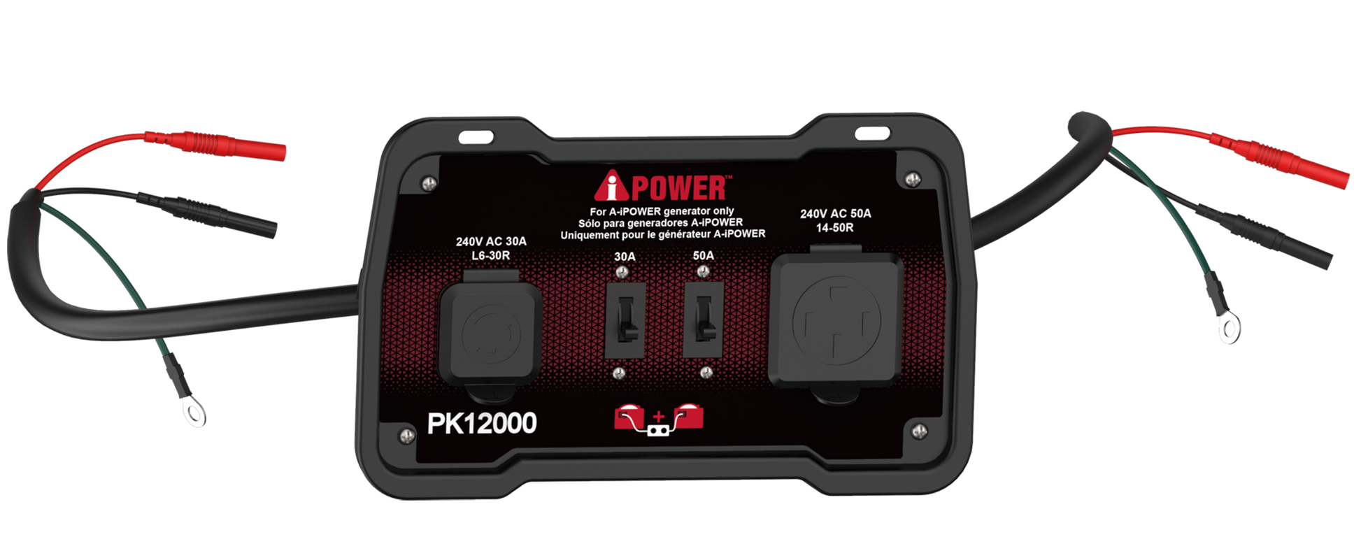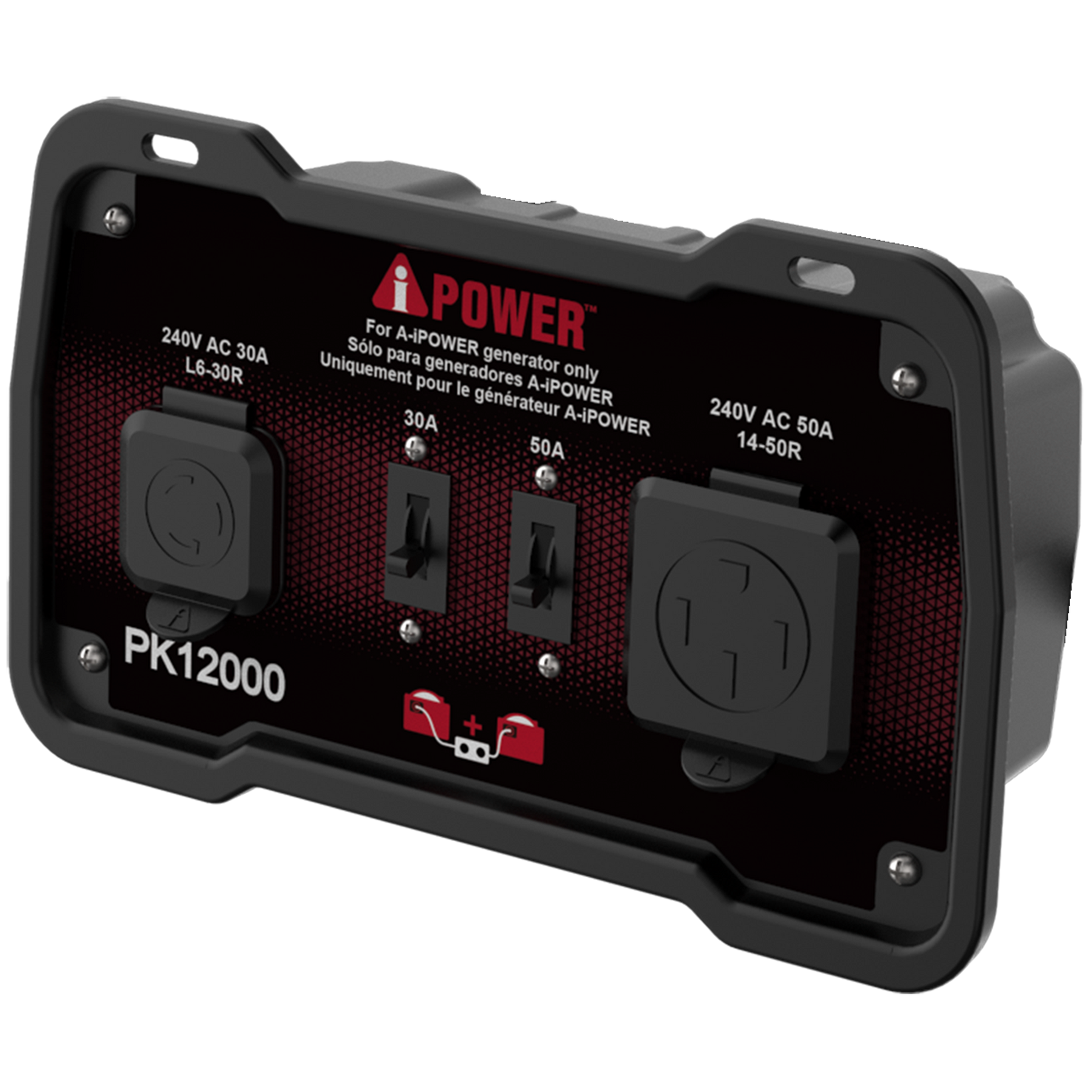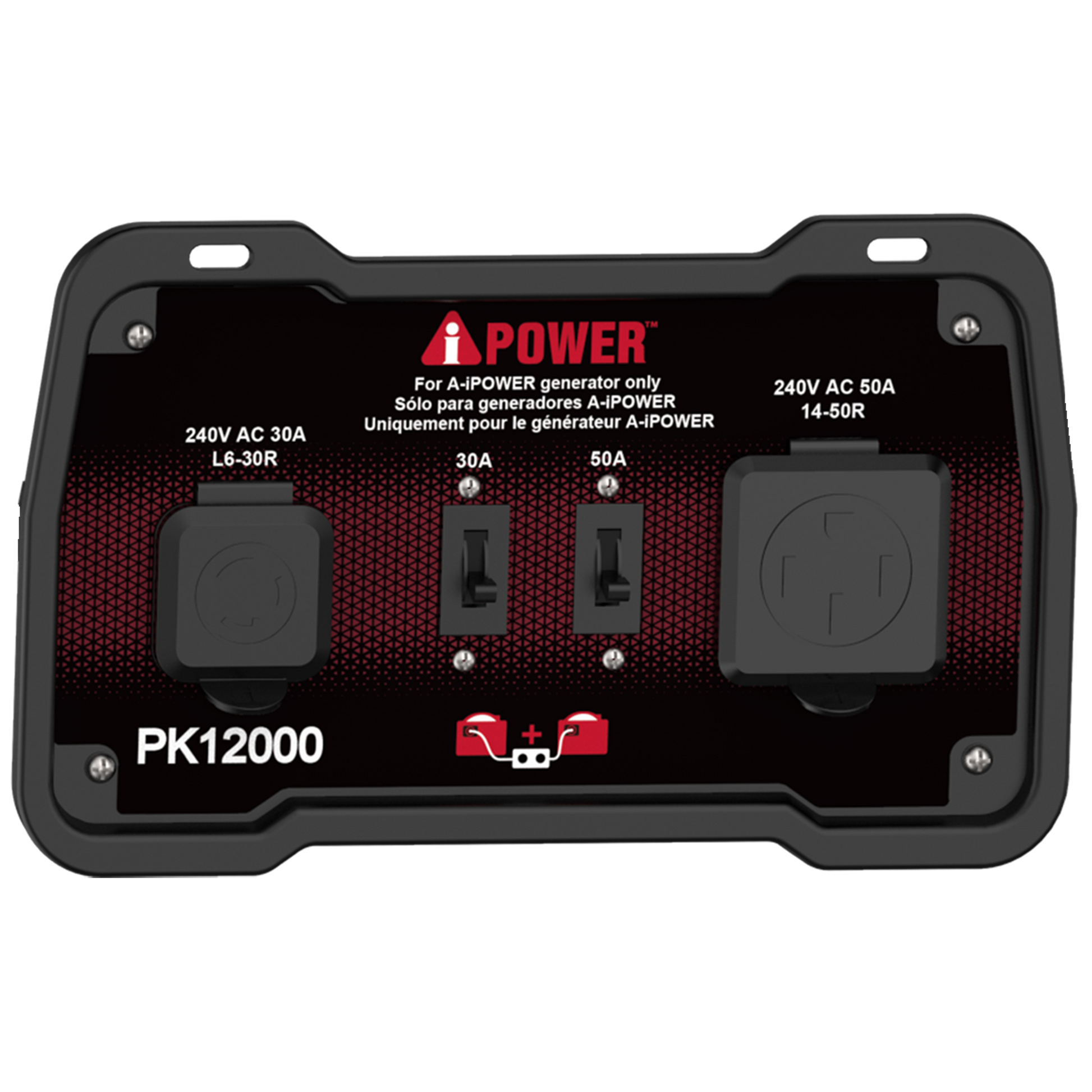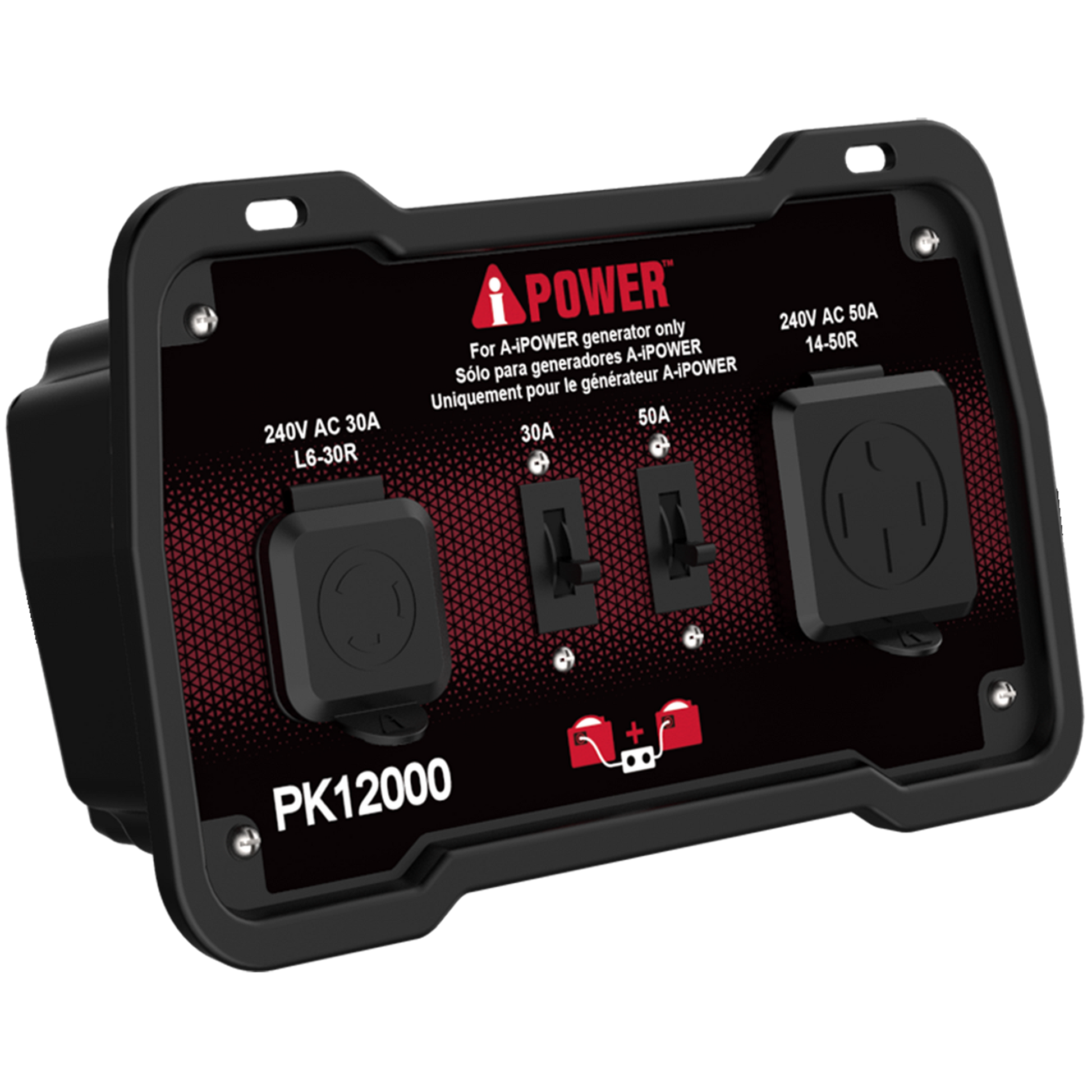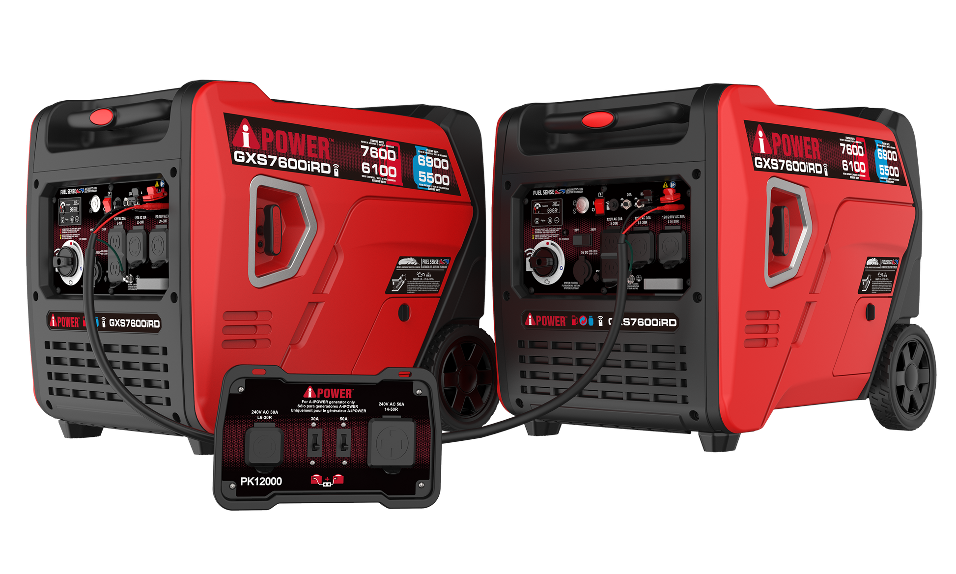 The PK12000 parallel kit, made for our inverters with engine sizes greater than 322cc, is designed to link two A-iPower inverter generators together to double wattage and amp output. The unit has rated power of 12,000W, with rated voltage of 240V with 50A current.
