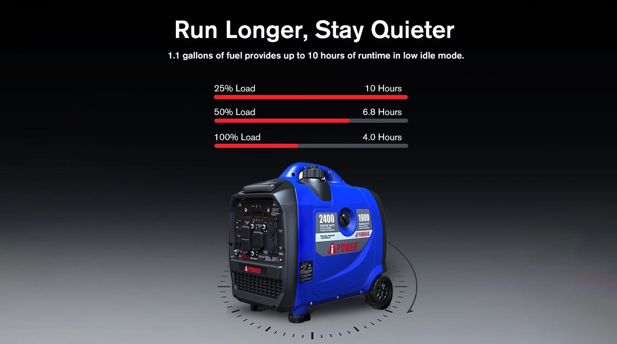 Low Idle Technology: Extended run time of 10 hrs at 25% load