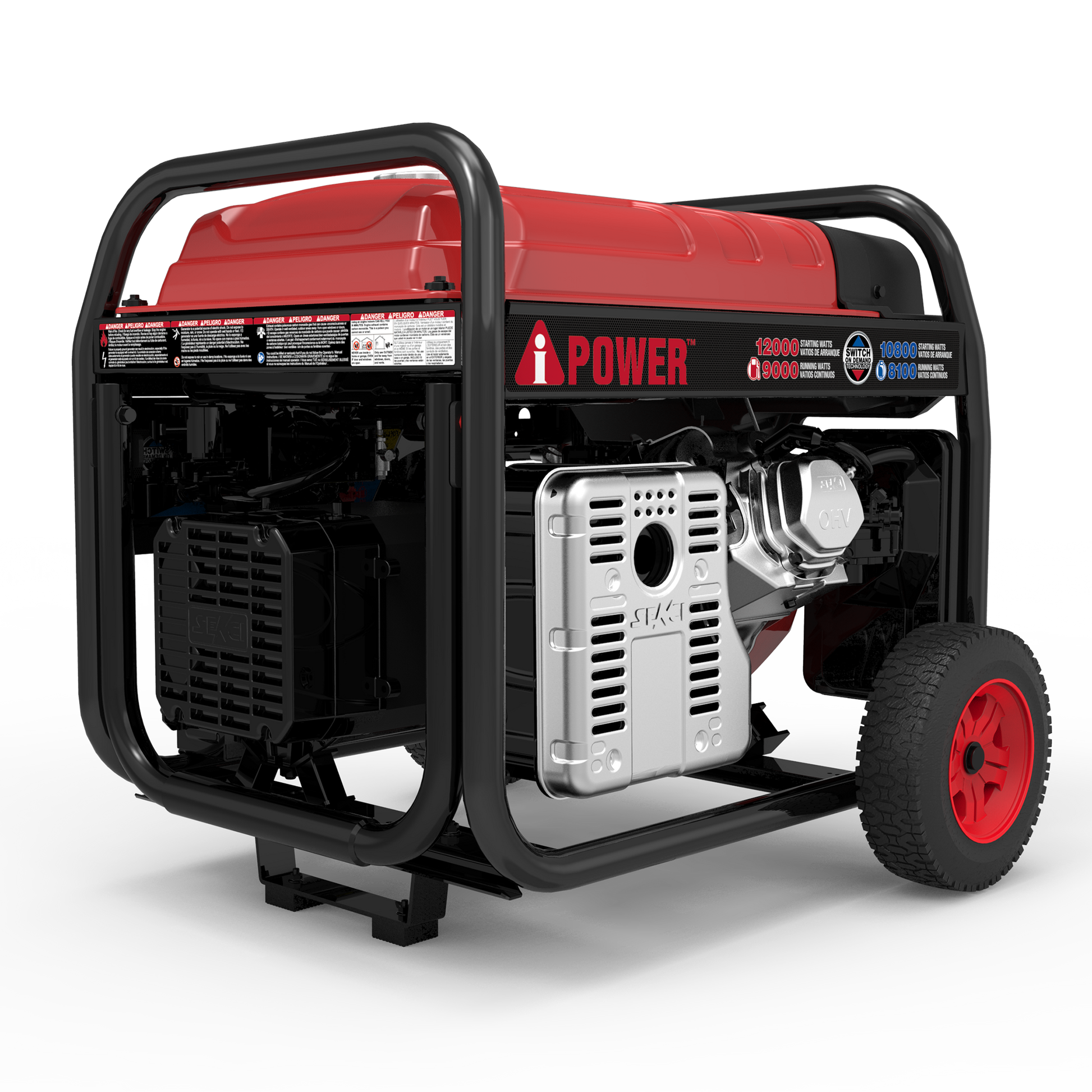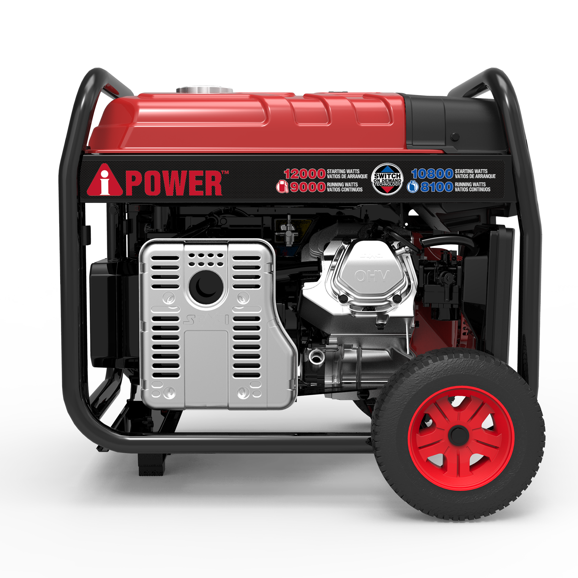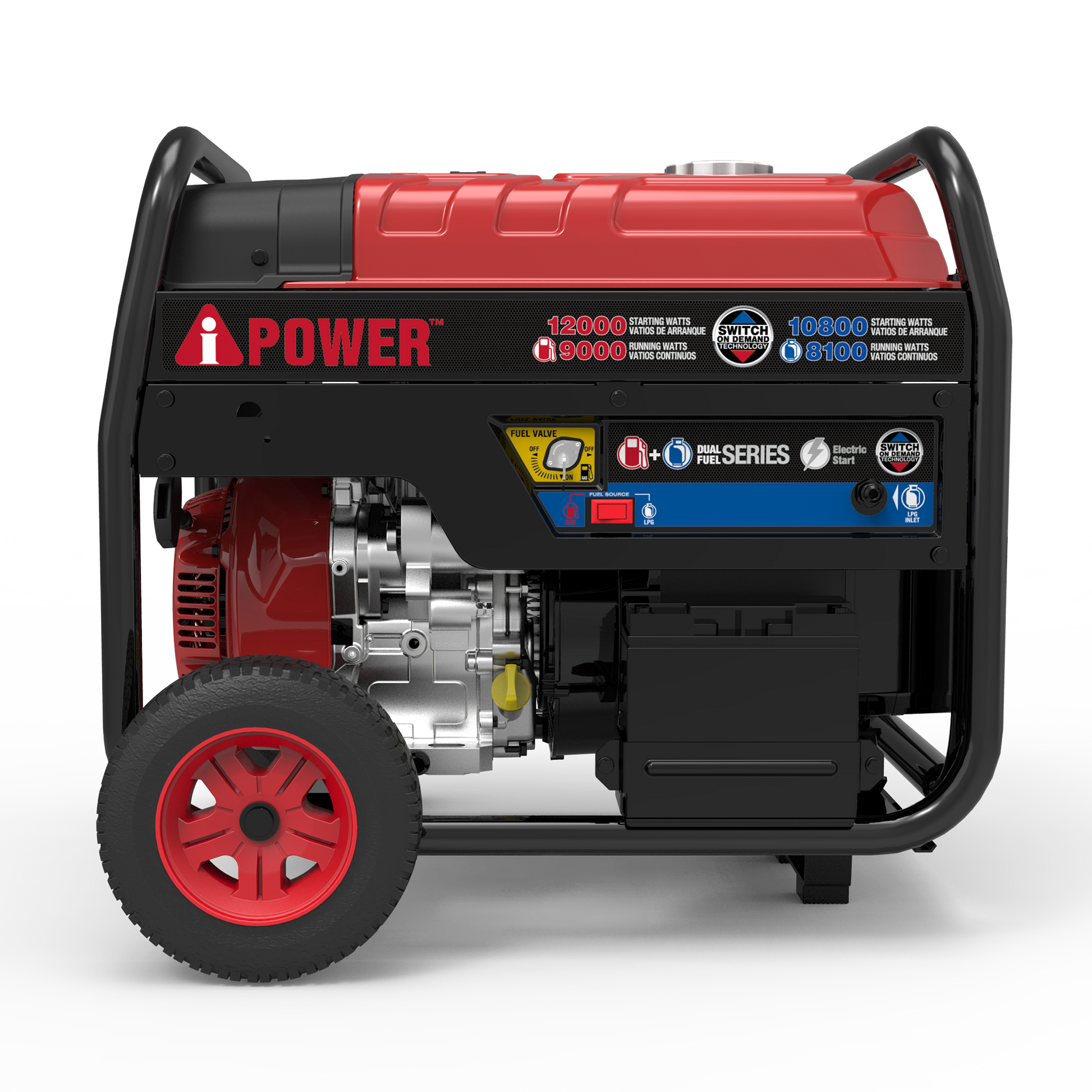 • High Output: 12,000 starting watts - 9,000 running watts on gasoline; 10,800 starting watts - 8,100 running watts on propane