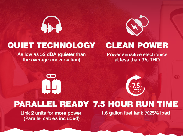 - Quiet Operation: Ultra Quiet - ideal for hom22e, camping, tailgating & RV