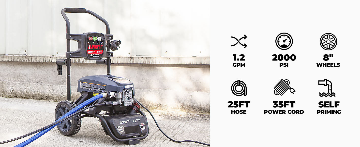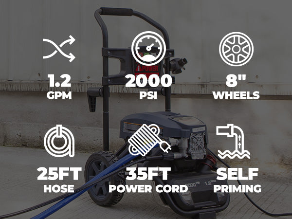 High Output: 2000 PSI @ 1.2 GPM for outstanding cleaning power