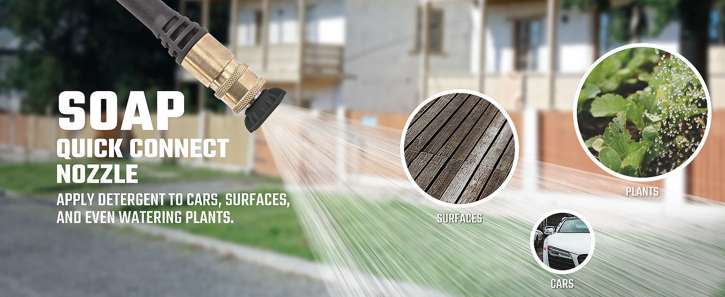 Nozzles & Soap Tank: 4 Pro-Style nozzles - including turbo nozzle and integrated soap tank for efficient cleaning power