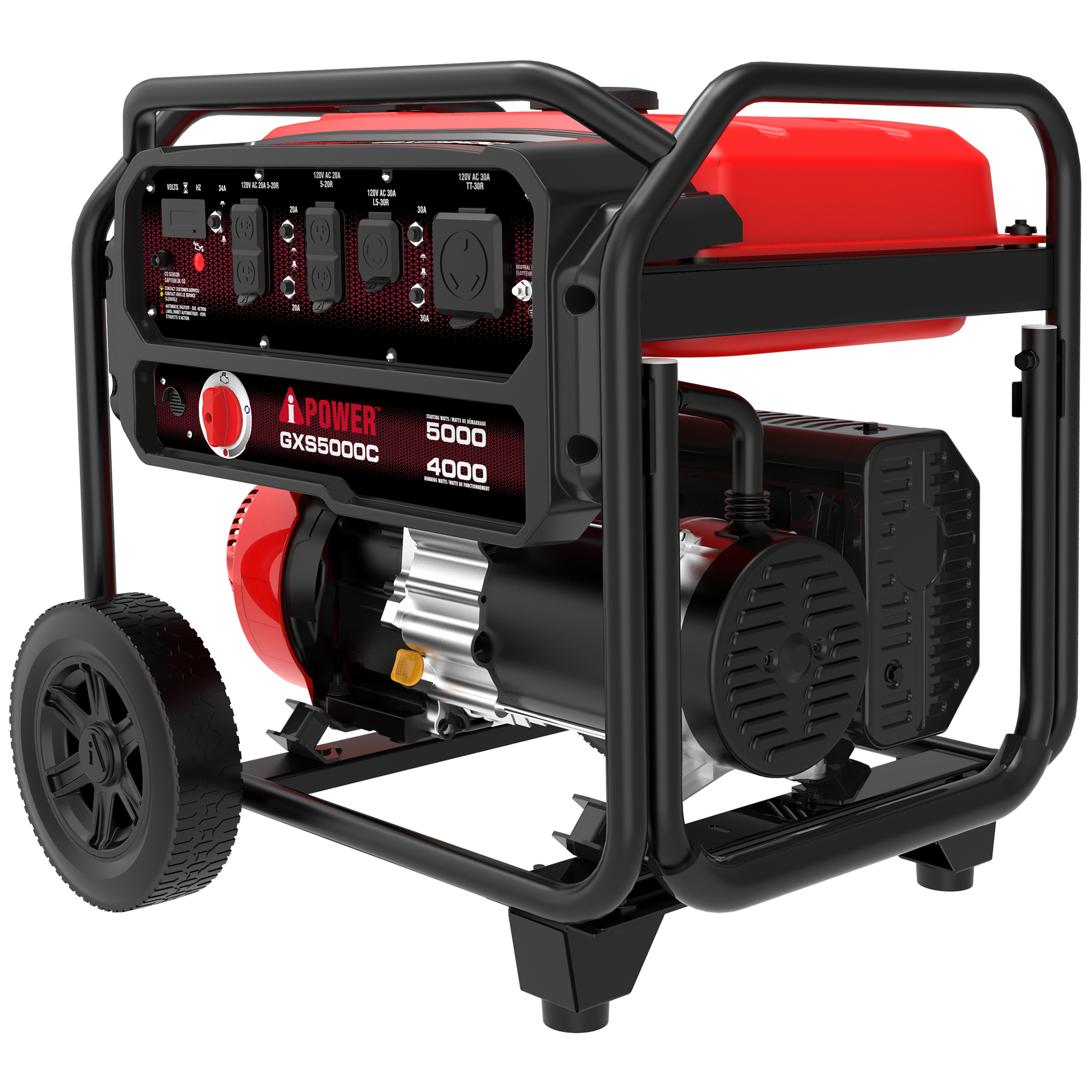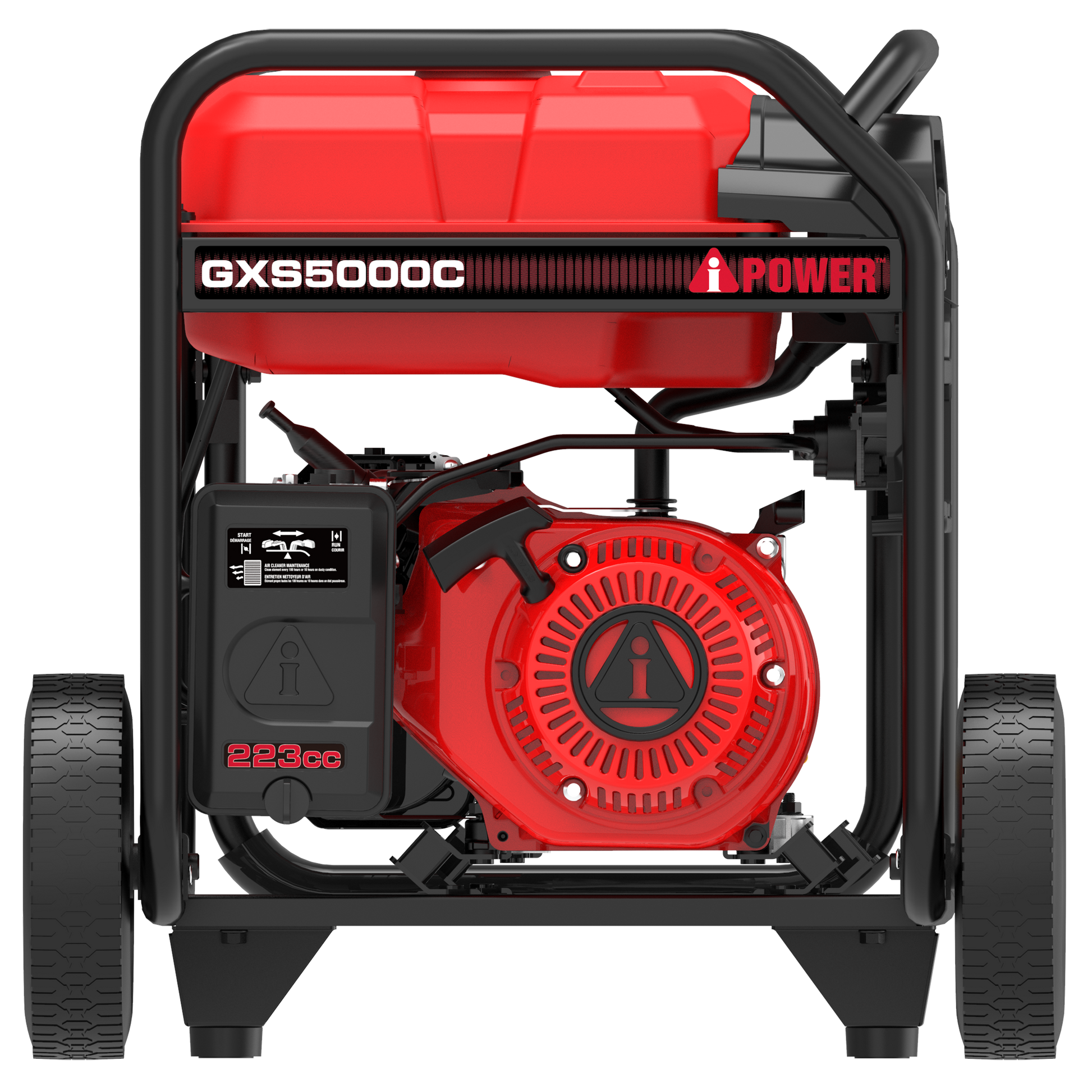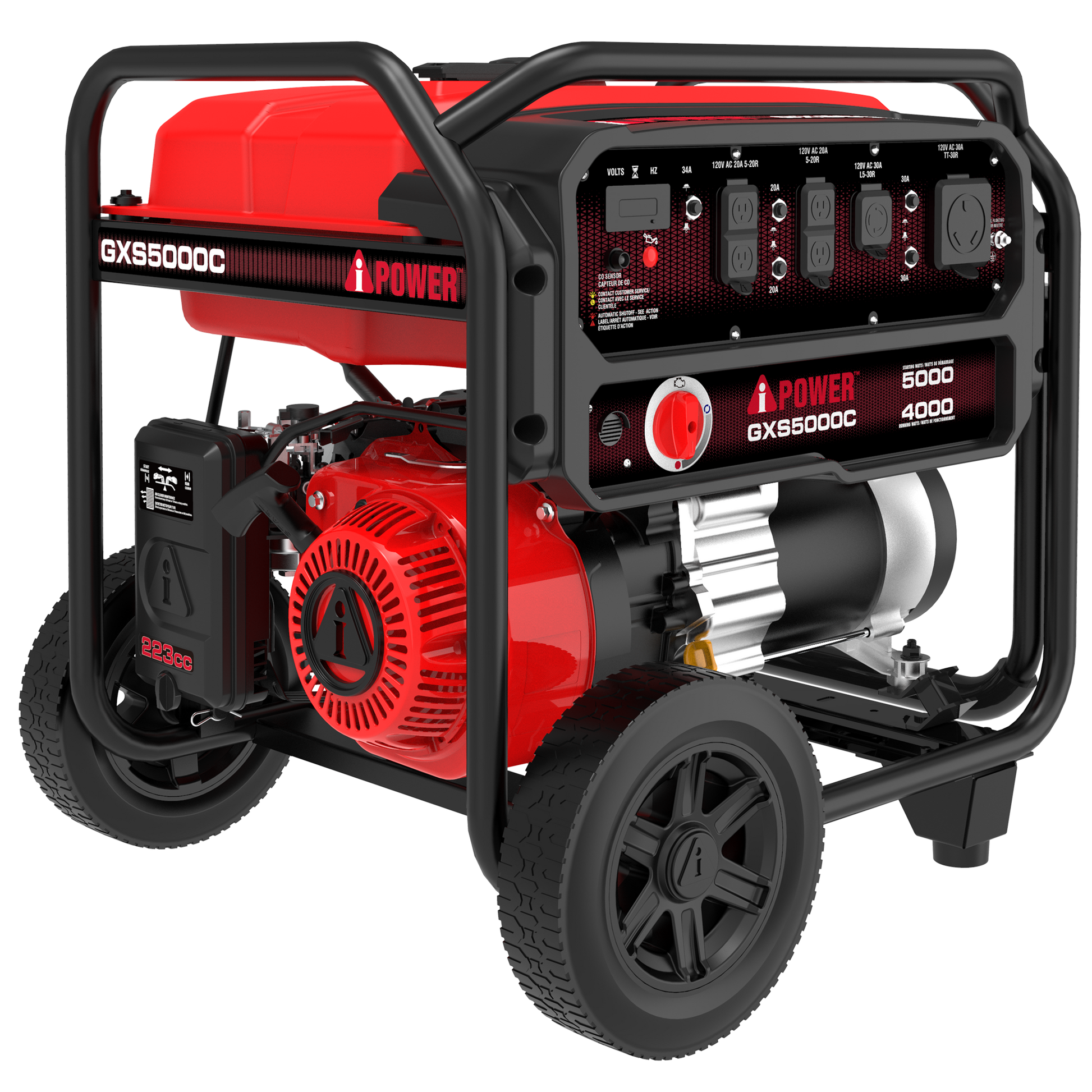 The A-iPower GXS5000C, with a 223cc OHV engine, cast iron sleeve, and low oil shutdown, features 5,000 starting watts and 4,000 running watts. With a 6.3-gallon fuel tank, the unit offers an extended run time of up to 20 hours at 25% load.