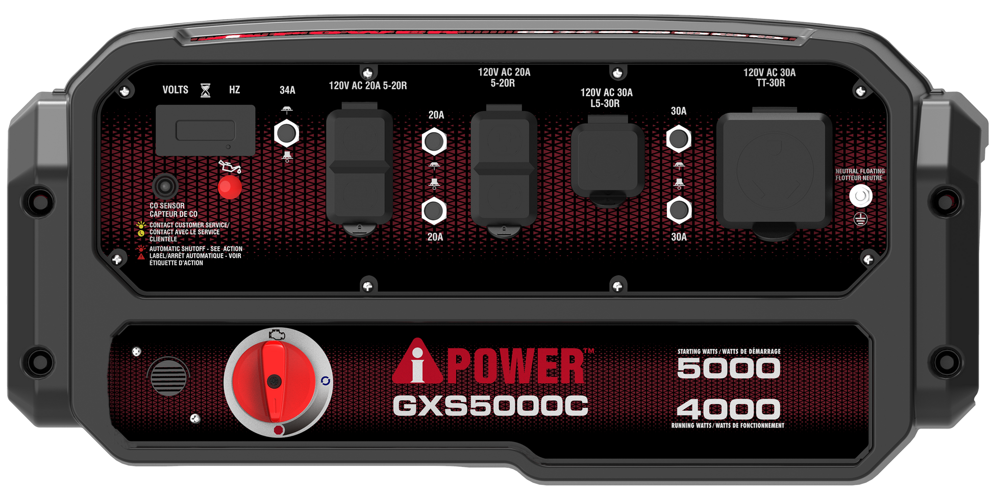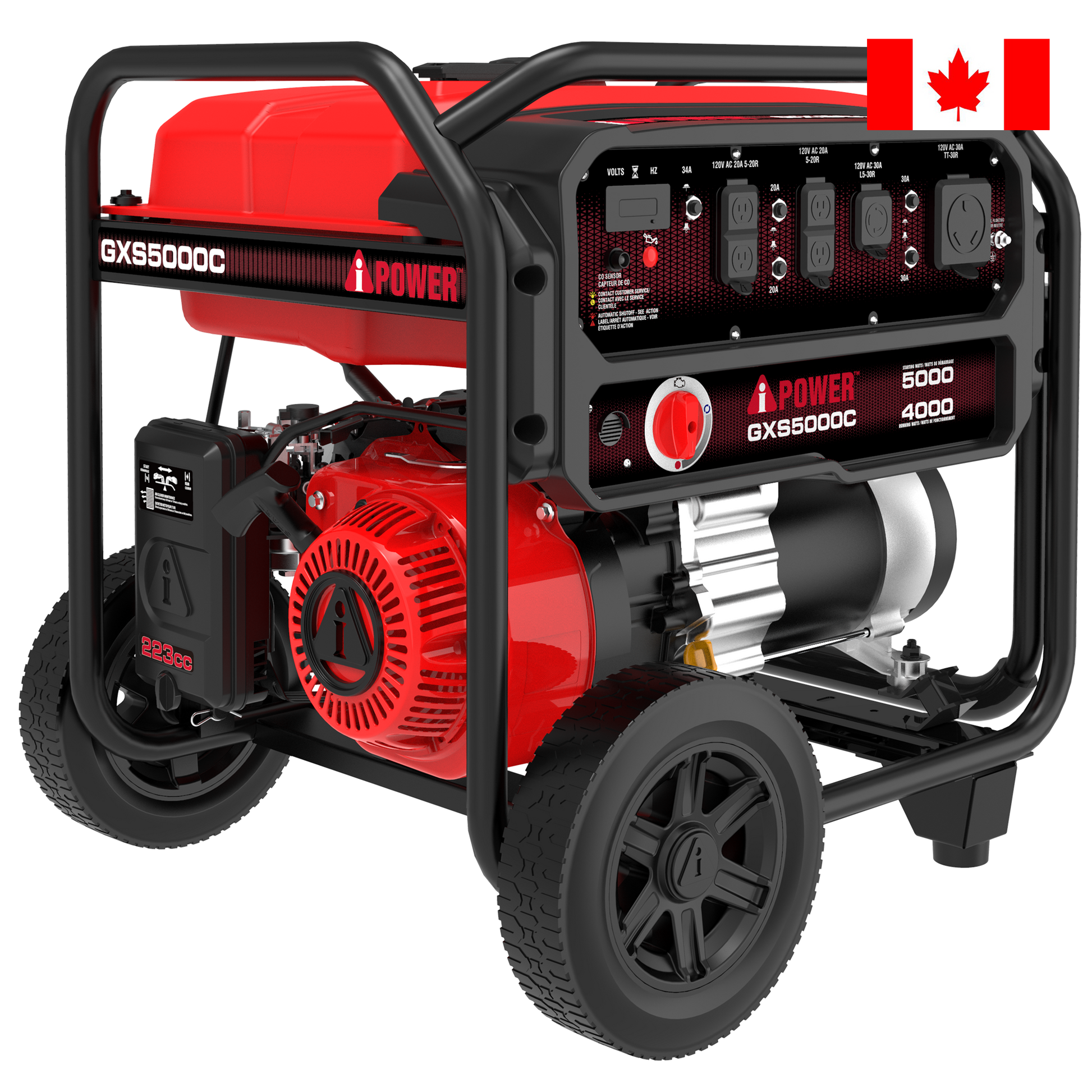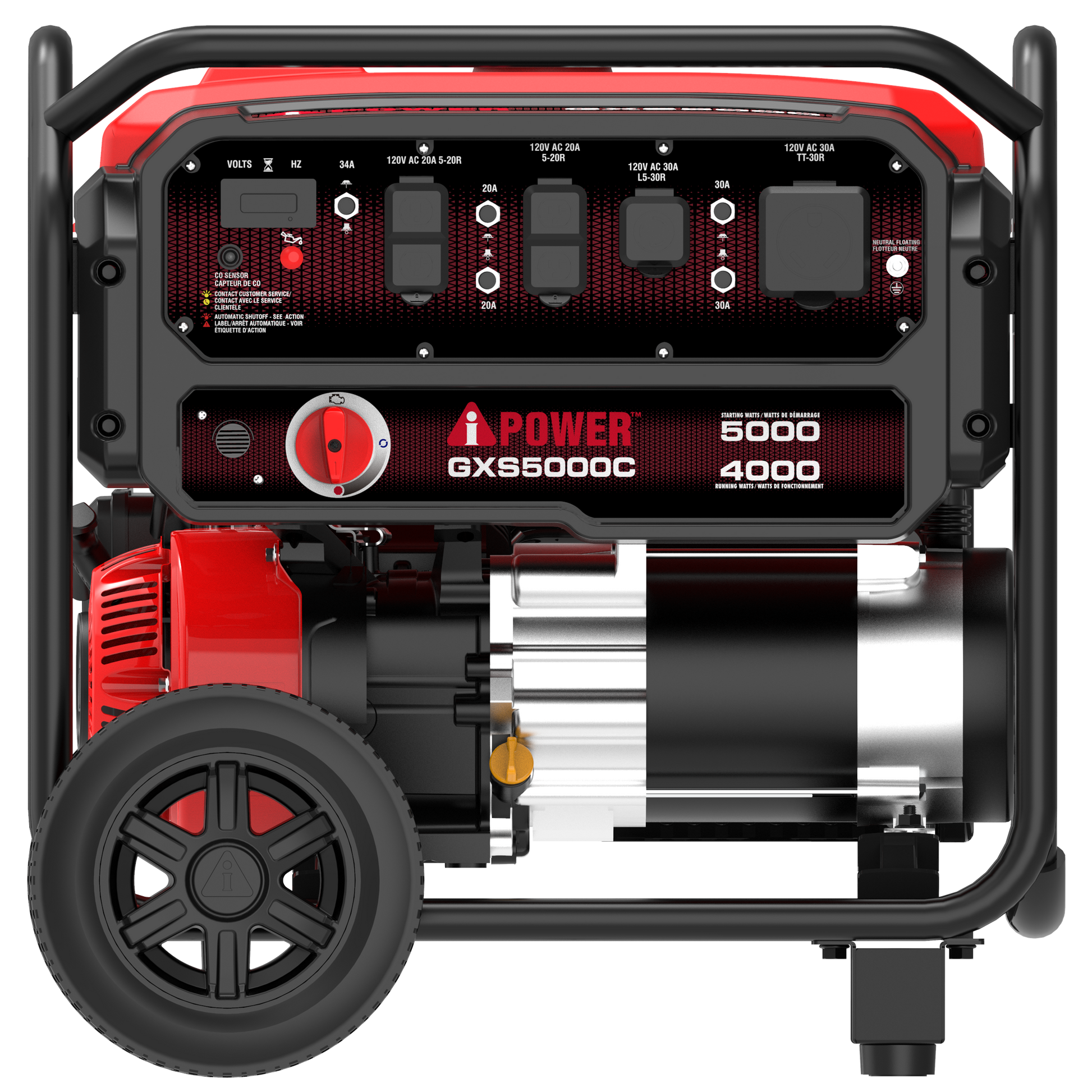 The A-iPower GXS5000C, with a 223cc OHV engine, cast iron sleeve, and low oil shutdown, features 5,000 starting watts and 4,000 running watts. With a 6.3-gallon fuel tank, the unit offers an extended run time of up to 20 hours at 25% load.