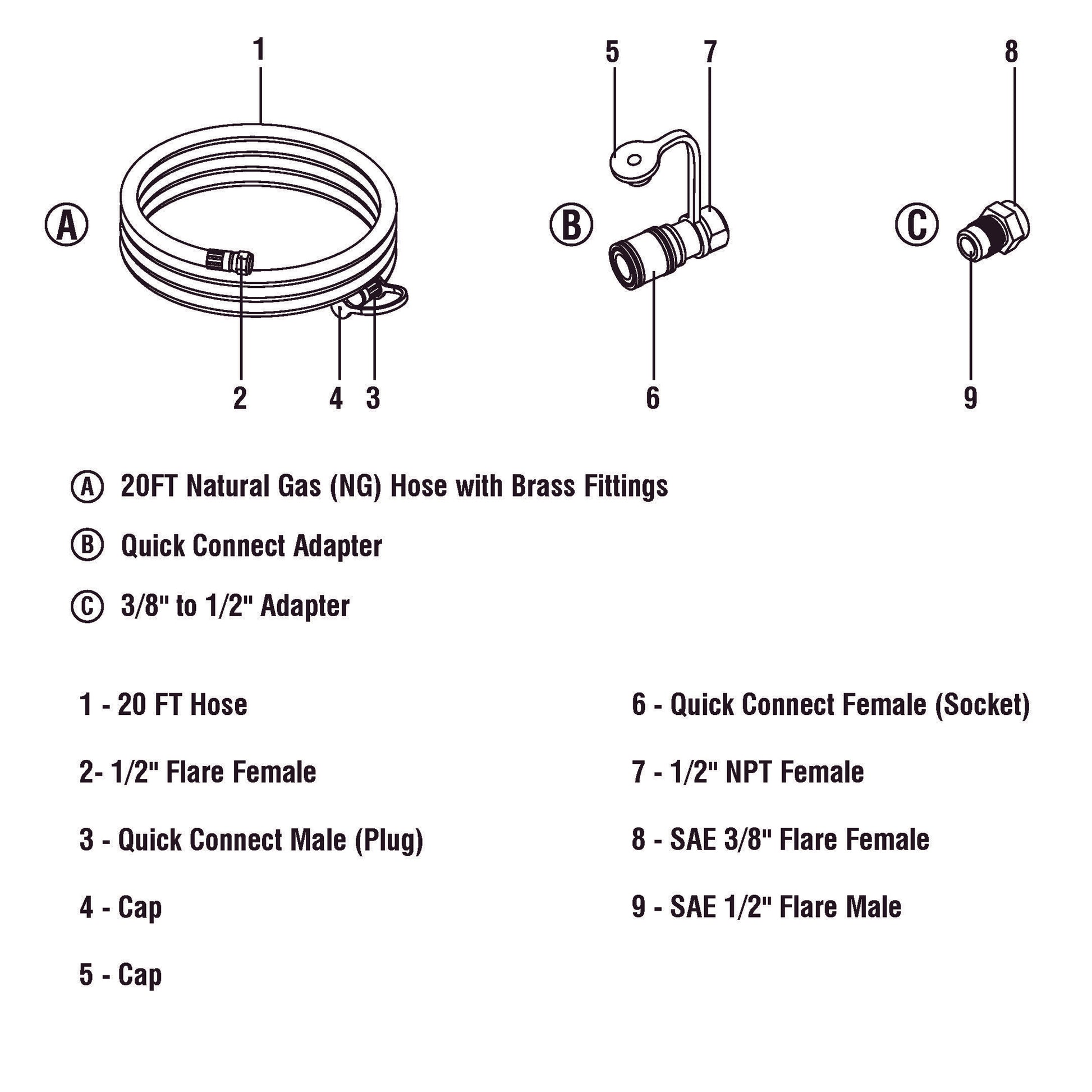 H1002 20’ Quick Connect 1/2" Natural Gas Hose Kit