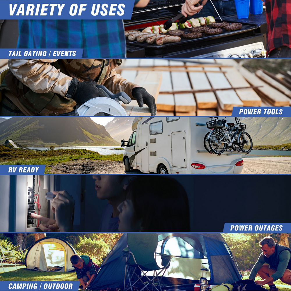 - Quiet Operation: As low at 61 db - ideal for home, camping, tailgating & RV