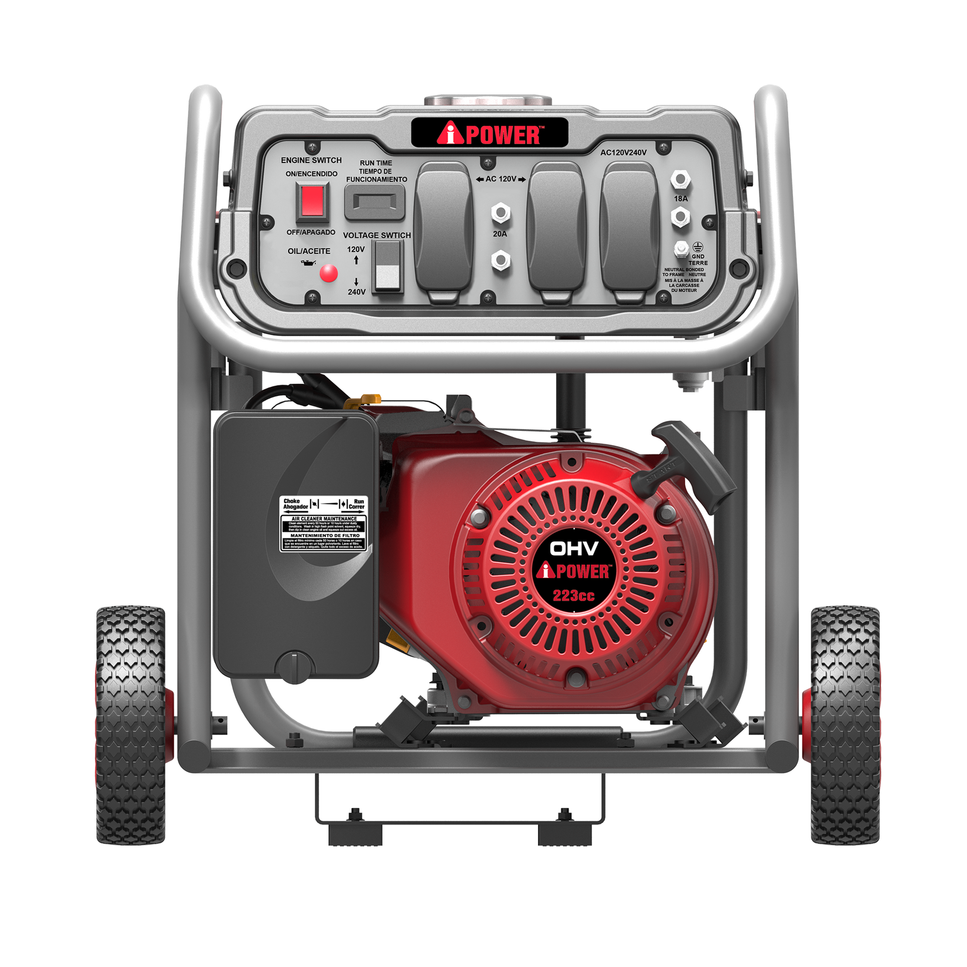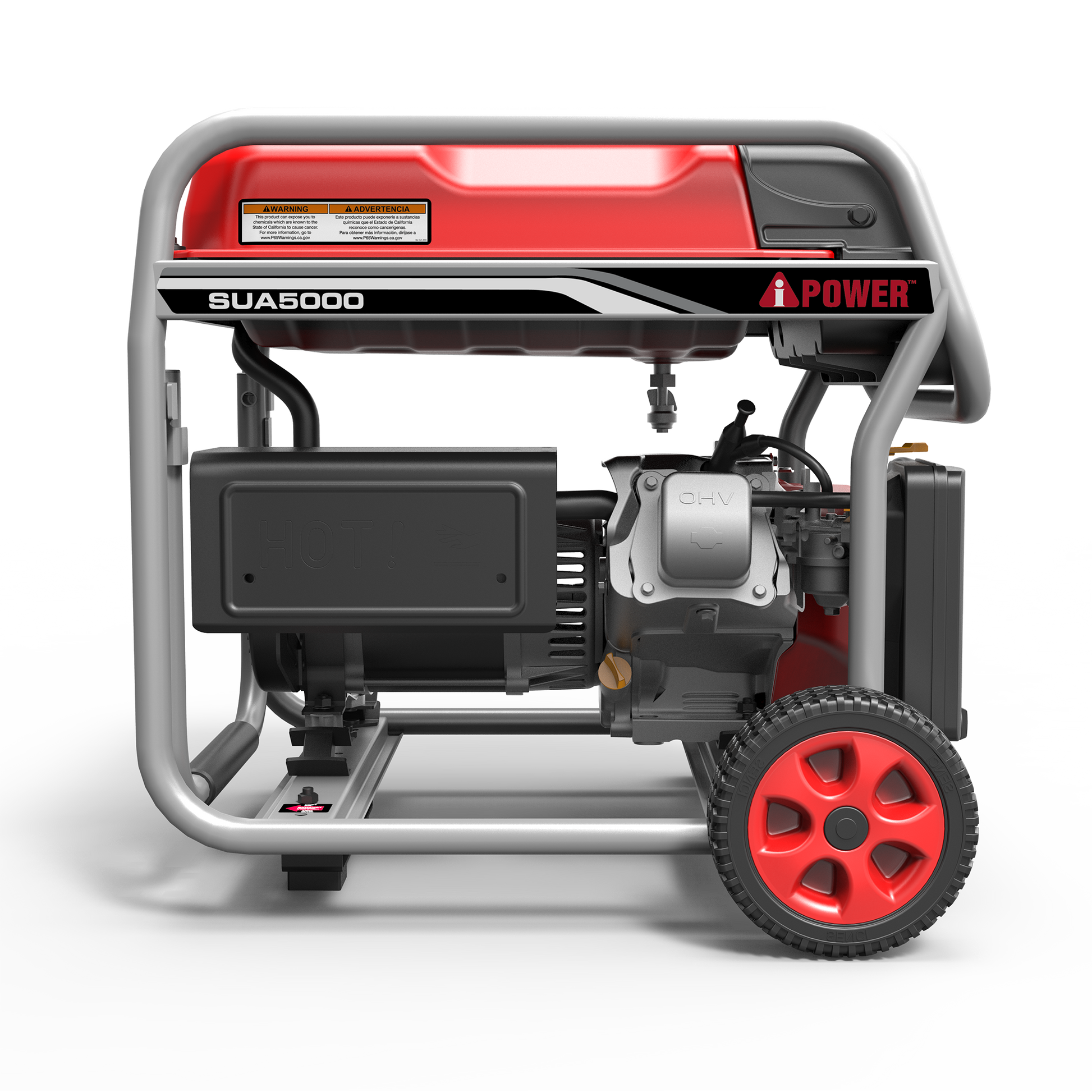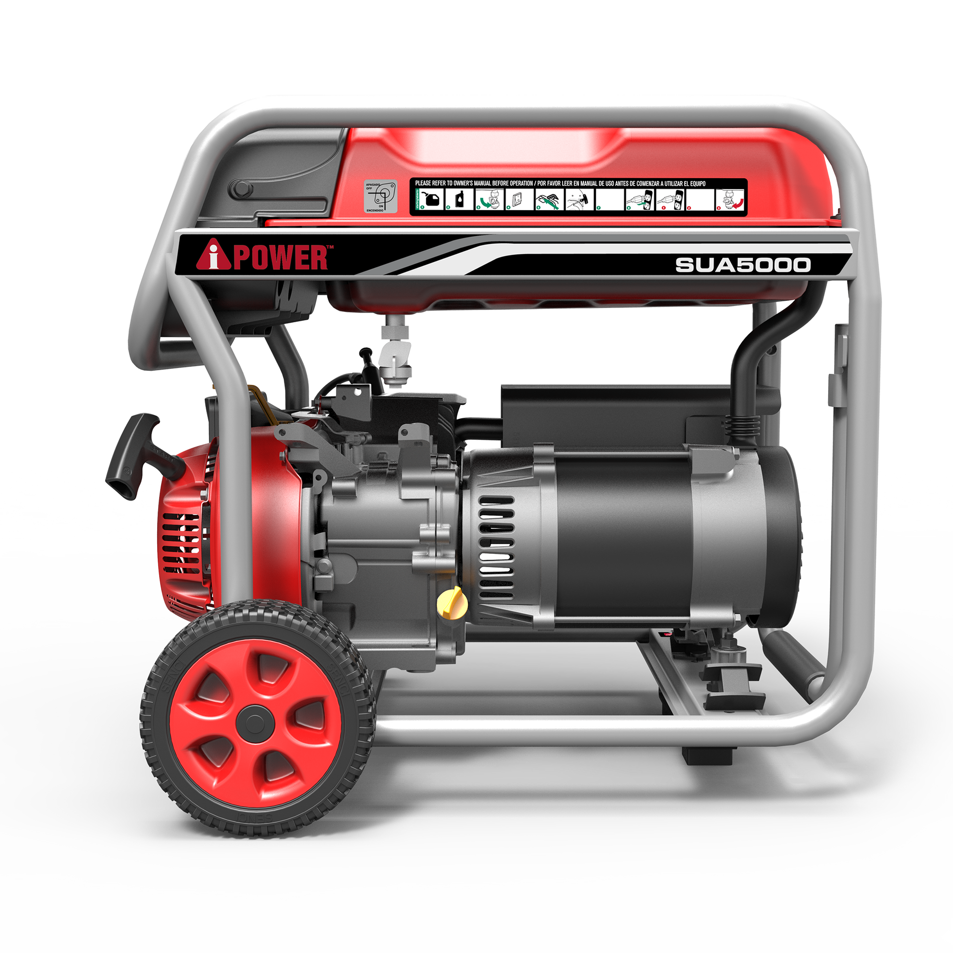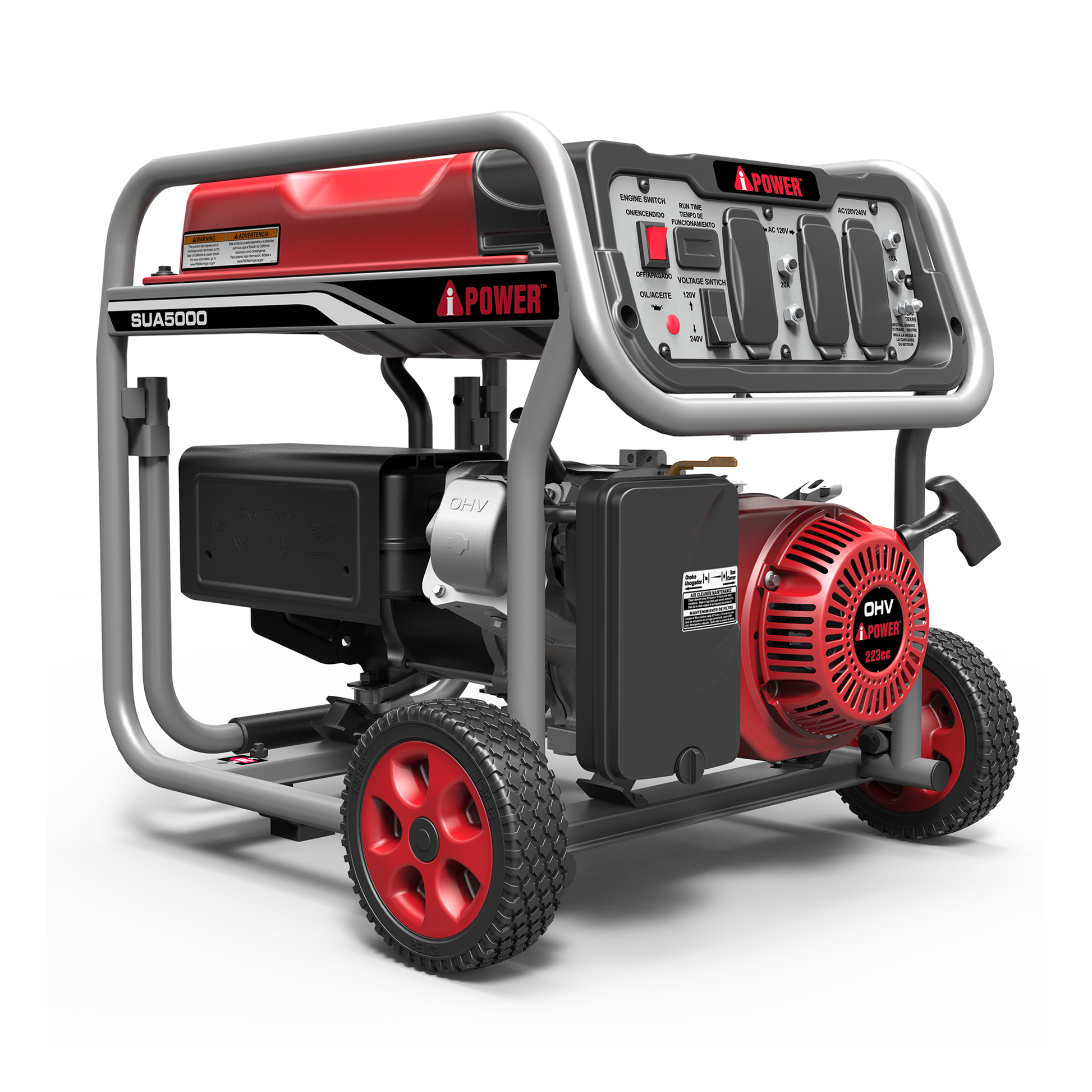The A-iPower SUA5000 produces 5,000 starting watts with 4,250 running watts to power your tools at the construction site, camping ground, or household appliances. Its powerful 223 cc OHV 4 stroke engine comes with a low oil alert light and low oil automatic shutdown to keep your generator performing year after year. The large 4-gallon gasoline fuel tank provides an average run time of 13 hours at 25% load. Built in portability with folding handle, rugged wheels and a durable powder coated metal frame to successfully meet your transportation demands.