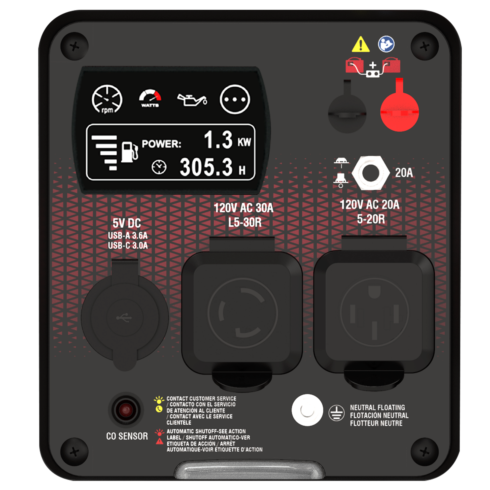 - Digital Data Center: Provides voltage, frequency, hours, power & fuel levels, output/overload/oil level status along with fuel saving low idle and reset functions